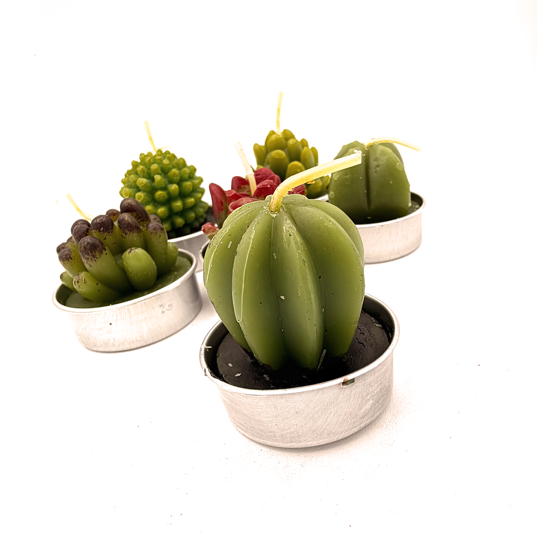 Design: Six unique mini nopal and cactus-inspired tea light candles