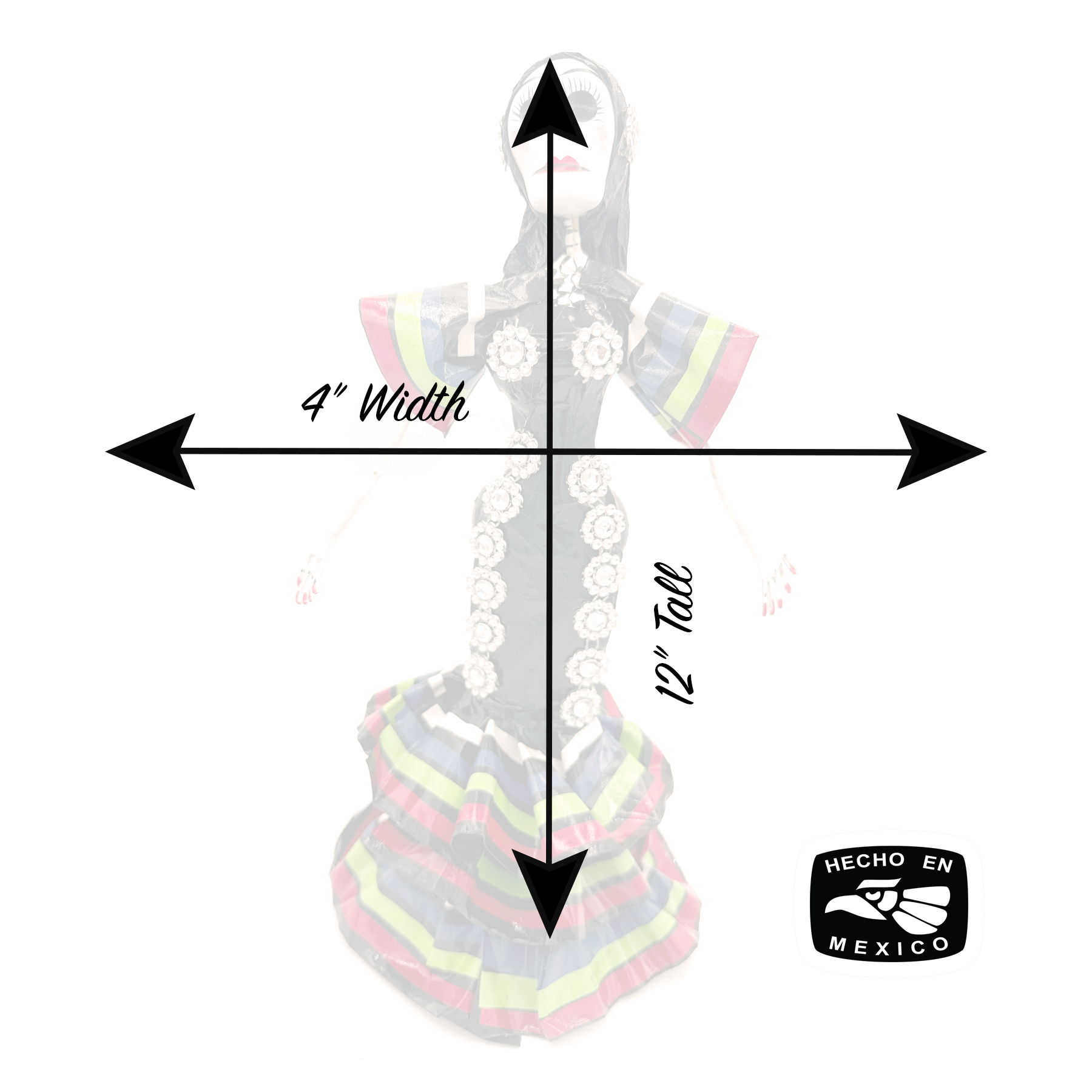Mexican Handmade Paper Maché – Catrina Hijas de Jalisco – Tricolor de Mayra